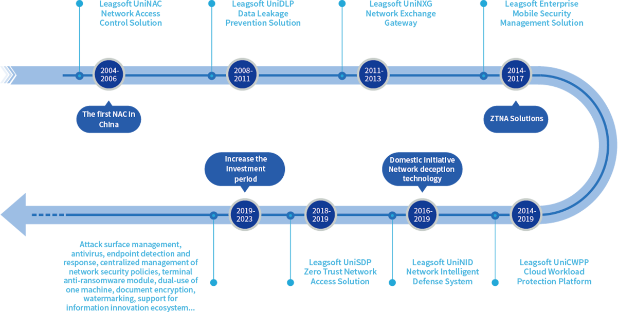 Shenzhen Leagsoft Technology Co., Ltd. (referred to as "Leagsoft Technology") was founded in 2004. It focuses on the enterprise-level network security market and provides network security products and services to government and enterprise customers around endpoint security, network security and cloud security. It has created network access control, terminal security management, data leakage prevention, data security ferrying, software-defined boundaries, network intrusion detection, mobile terminal security management, cloud host security management, Internet security monitoring SaaS platform, cyberspace asset mapping, and terminal detection. Comprehensive security solutions with Response and other products.